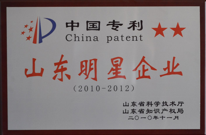 From 2008 to 2014, the company won "China patent shandong star enterprise" certificate in succession