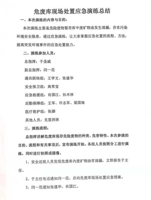 危废库现场处置应急演练总结